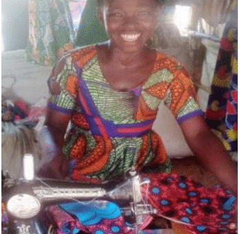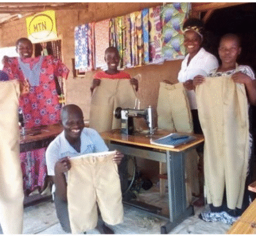 Above, are Ms. Adili Betty and, Ms. Nyakuru Monica making uniform